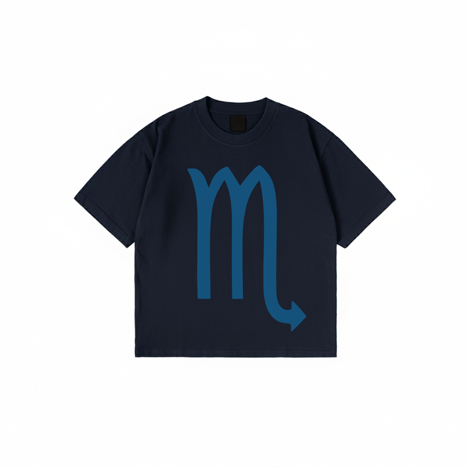 Bold Scorpio Symbol: Large, minimalist zodiac print for a striking, confident look.